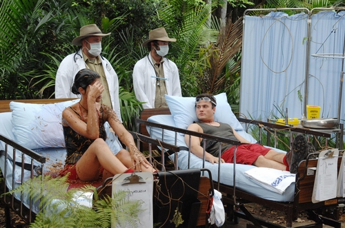 Dr. Bob klärt seine Patienten auf: „Ihr werdet in den Urwald-Klinikbetten abwechselnd verschiedene Behandlungsmethoden über euch ergehen lassen. Bei der ersten Station braucht ihr Schutzbrillen für die Augen. Mein Tipp: haltet den Mund zu, solange ihr könnt. Ihr könnt jede Behandlung jederzeit abbrechen.“ Dann die magische Frage: Sonja Zietlow: „Wollt ihr zu dieser Dschungelprüfung antreten?“ Micaela Schäfer und Rocco Stark gemeinsam: „Ja, logisch, wir nehmen die Prüfung an.“